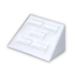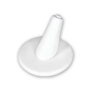 Exhibidor de anillo único de cuero sintético blanco. Esta pantalla de anillo es más corta y presenta una elegante base redondeada. Ideal para acomodar anillos de todos los tamaños. Tamaño: L: 2.00 ∗ W: 2.00 ∗ H: 2.00 pulgadas. Material: cuero sintético.