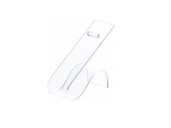 Acrílico para exhibición de calzados, se puede colocar sobre mostrador o vitrina. Material acrílico transparente.