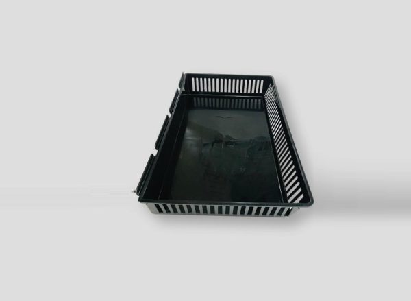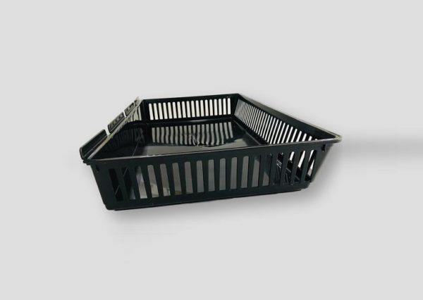 Canasta plástica negra. Funciona en las planchas Slatwall.