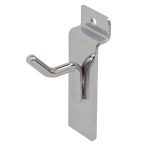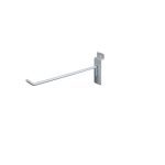Gancho metal Principalmente diseñado para productos pequeños empacados o artículos livianos que cuelgan para usar en las planchas slatwall. Alza de 45 grados al final. Tamaño 10 pulgadas. Material: metal blanco semi-gloss