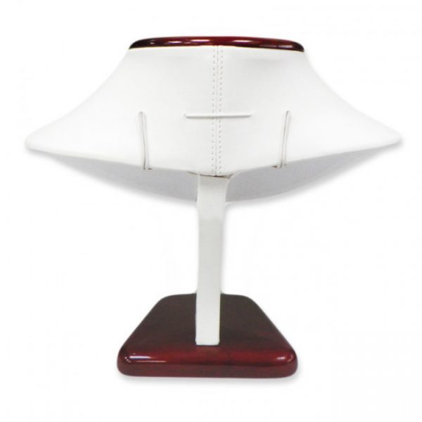 Pantalla extra grande de cuero sintético blanco y collar de palo de rosa. Esta pantalla asequible puede acomodar un solo collar o cadena.Tamaño: L: 7.00 ∗ W: 4.25 ∗ H: 7.50 pulgadas Material: cuero sintético y palo de rosa.