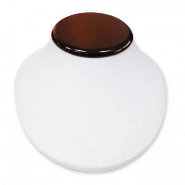 Exhibidor de collar y cadena, blanco con tope de madera.