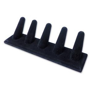 Soporte de exhibición de 5 anillos de terciopelo negro. Esta pantalla de anillo tiene 5 dedos fijos que se ajustarán y mostrarán cualquier anillo, perfecto para tu exhibición en tu negocio. Tamaño: L: 8.00 ∗ W: 2.00 ∗ H: 2.50 pulgadas. Material: terciopelo.