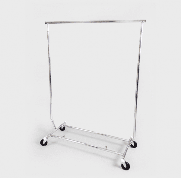 Hecho de tubo redondo de 1 «. Hangrail de 48″ con dos varillas extraíbles de 12plg. La altura es ajustable a 55», 60 «y 65». Tiene ruedas de rodamiento de bolas de 4 «. Incluye clips para el almacenamiento del hangrail y protectores de goma protectores. Plegable. Fácil de transportar. Resiste hasta 80lbs . Le ayuda a tener una buena organización y exhibición de sus piezas en su tienda, también es muy usado en las casas como organizador de closet.
