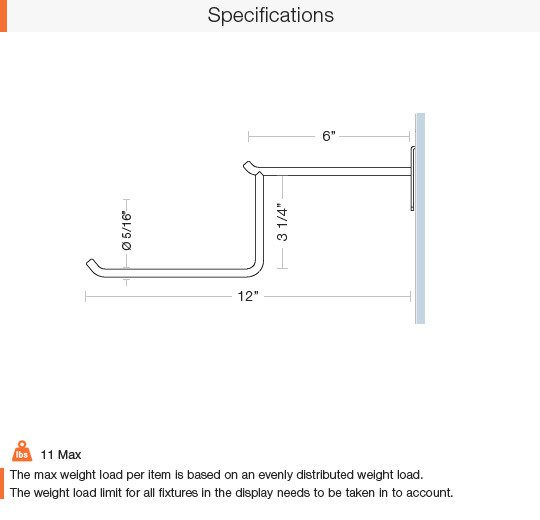 Largo: 12 » Diámetro: 5/16 » Carga máxima de peso: 22 libras Material / Acabado: Plata Frost Finish